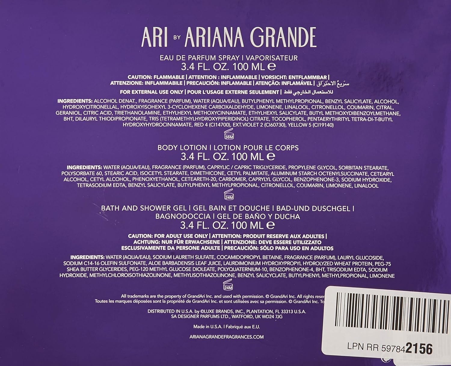 Ari By Ariana Grande For Women 3 Pc Gift Set 3 4oz Edp Spray 3 4oz Body Lotion 3 4oz Bath Showe Walmart Com Walmart Com